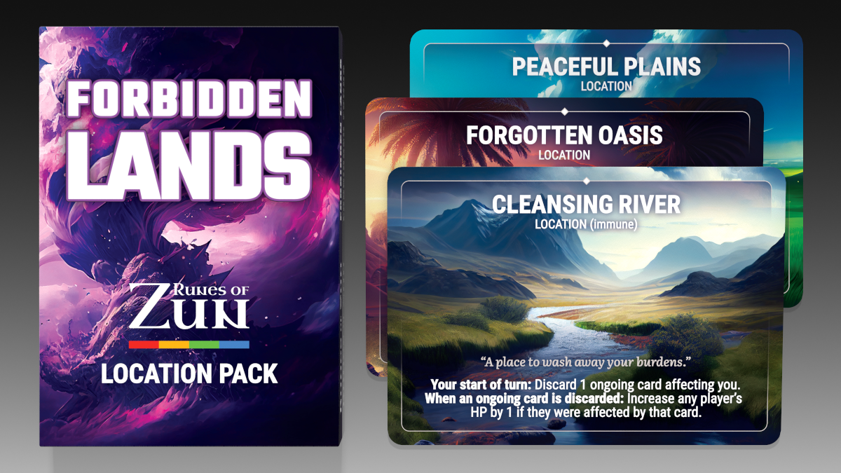 Escape the realm of Zun! These new Location cards take your whole table on a journey to distant lands that change add or change the rules while you play. It’s a new way to play the game you already know!