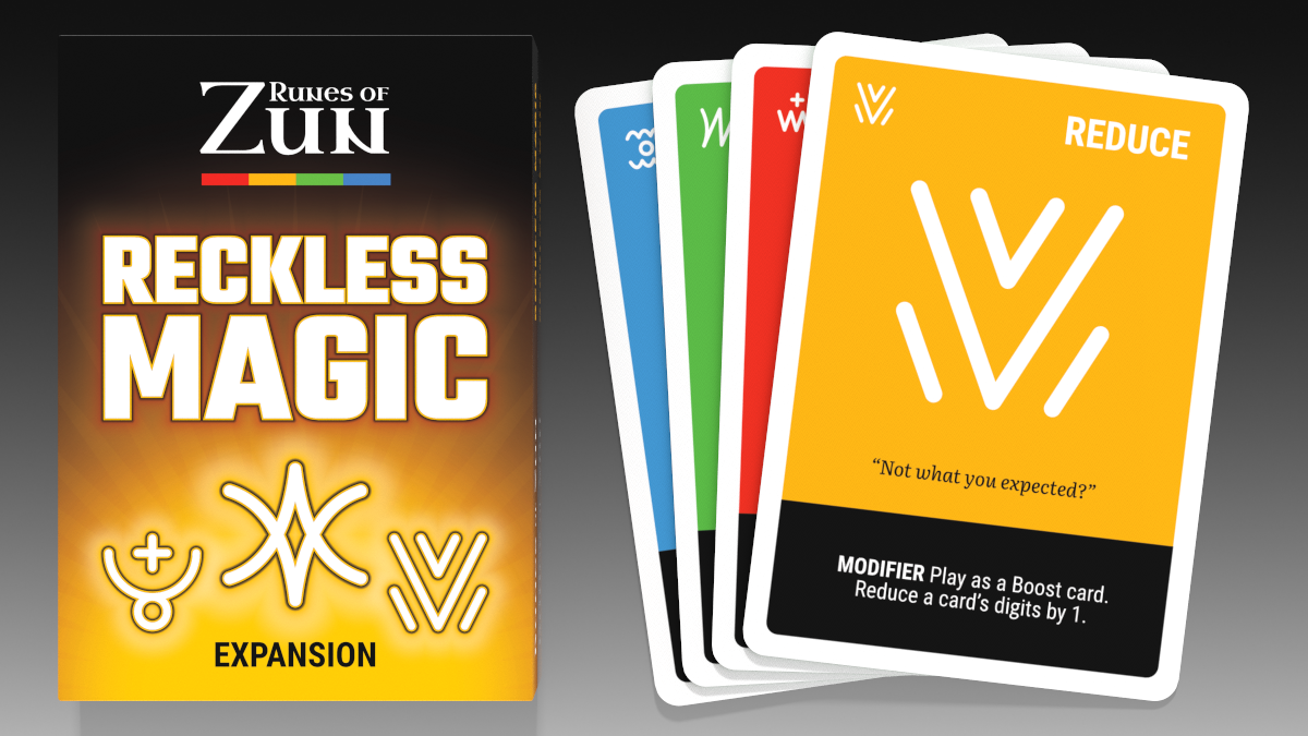 New expansion for Runes of Zun! Get 36 new cards made from 15 new runes, including the radical Reduce card — it’s the anti-Boost. There are 8 Reduce cards in the expansion, and they can diminish or even reverse card effects!